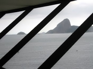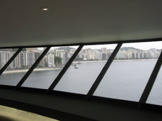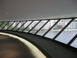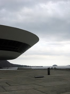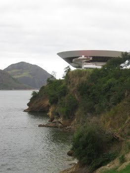 The museum was designed by legendary Brazilian architect Oscar Neimeyer (now 103 years old!). Its distinctive shape instantly became iconographic for the city of Niterói, showing up in the new city logo and used for various department graphics, etc.